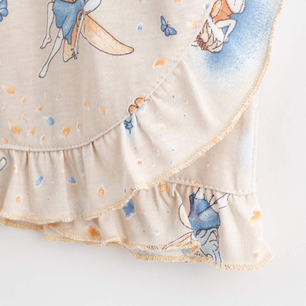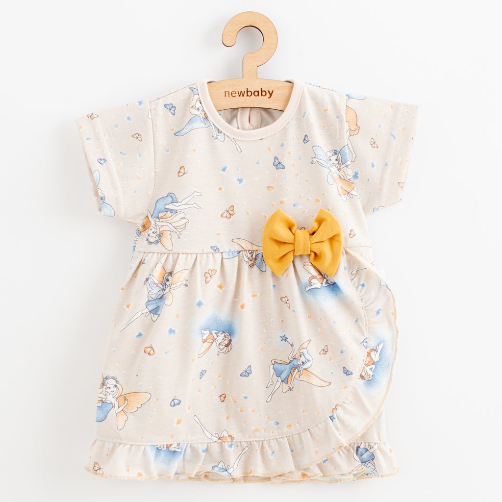 Krásné letní bavlněné kojenecké šatičky s čelenkou české značky New Baby Víla pro všechny malé parádnice. Šatičky s krátkým rukávem celopotištěné vílami a roztomilým volánkem, jsou ušity ve tvaru písmene A. Zapínání na cvoček na zadní straně usnadní oblékání. Šaty mají velmi příjemný a kvalitní materiál, který je vhodný pro miminka. Krásná bavlněná dívčí čelenka, potěší všechny malé parádnice. Čelenka je pružná, dobře se přizpůsobí. Složení: 100% bavlna.